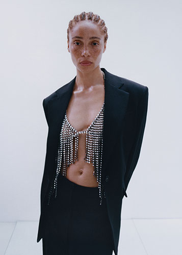 The collection unites past and present. Playful, iconic hits from McCartney’s early archive are combined with current signatures, such as oversized shirting, sweeping trenches, sharp tailoring, and bejewelled prints and slogan tops.