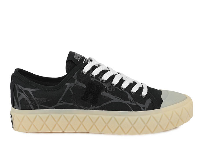 The PALLA ACE VINES reimagine Hawkins High through the lens of the Upside Down. Black canvas and vine prints glow in the dark, while illuminated laces and outsole light every step forward.