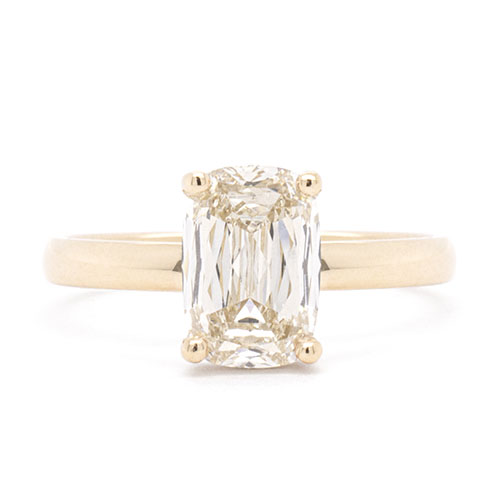 An antique-inspired elongated cushion champagne “Desert Diamond”, bathed in soft golden warmth — a beautifully romantic alternative to the classic white diamond.