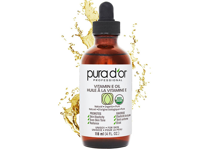 PURA D’OR Vitamin E Oil is available on Amazon.ca